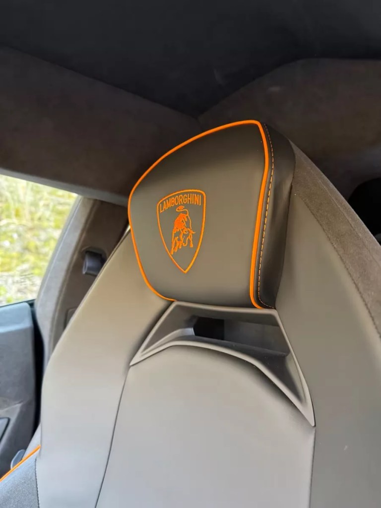 Lamborghini brodé sur l’appuie-tête en orange